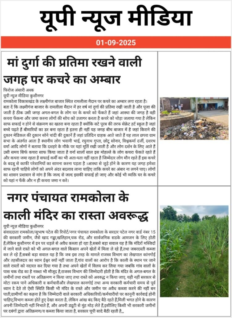 दुर्गा की प्रतिमा रखने की जगह पर कचरे का अम्बार.